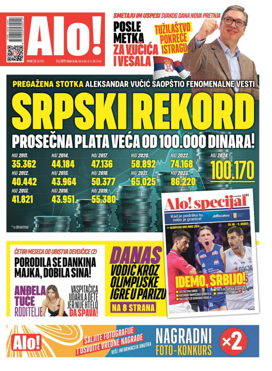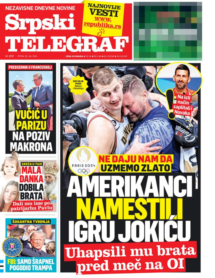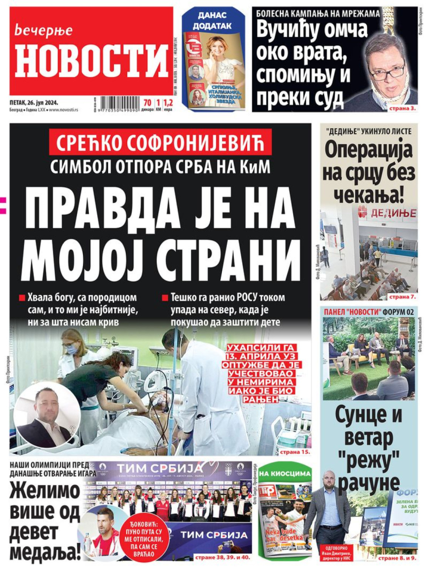 Dnevne novine u Srbiji za petak, 26. jul 2024. godine, na naslovnim stranama najavljuju brojne aktuelne društveno-političke teme i donose ekskluzivne priče.