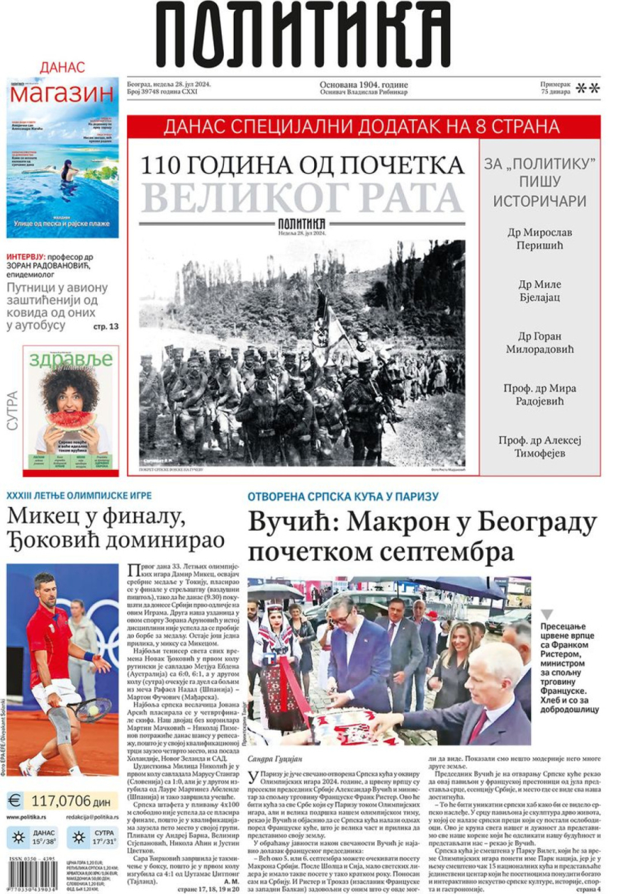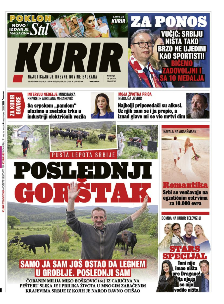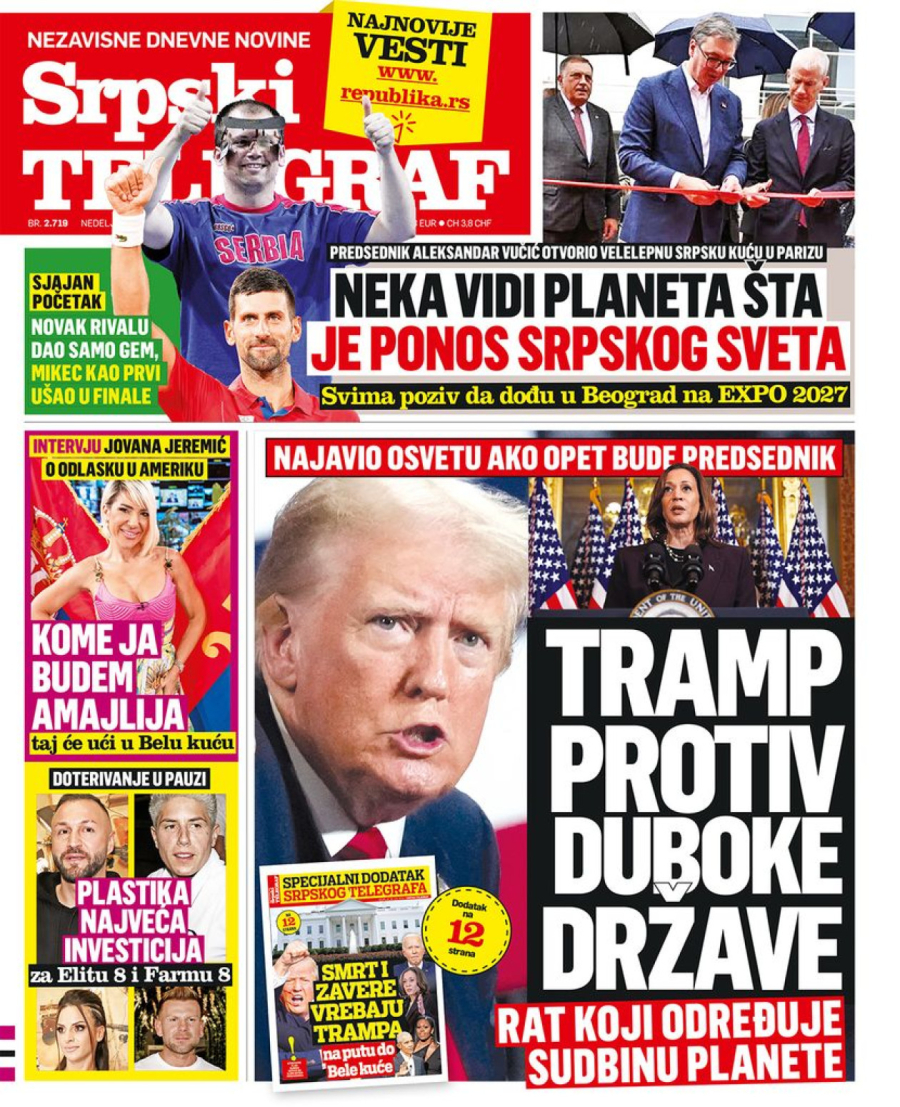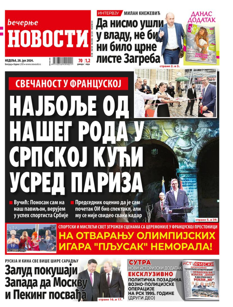 Dnevne novine u Srbiji za nedelju, 28. jul 2024. godine, na naslovnim stranama najavljuju brojne aktuelne društveno-političke teme i donose ekskluzivne priče.