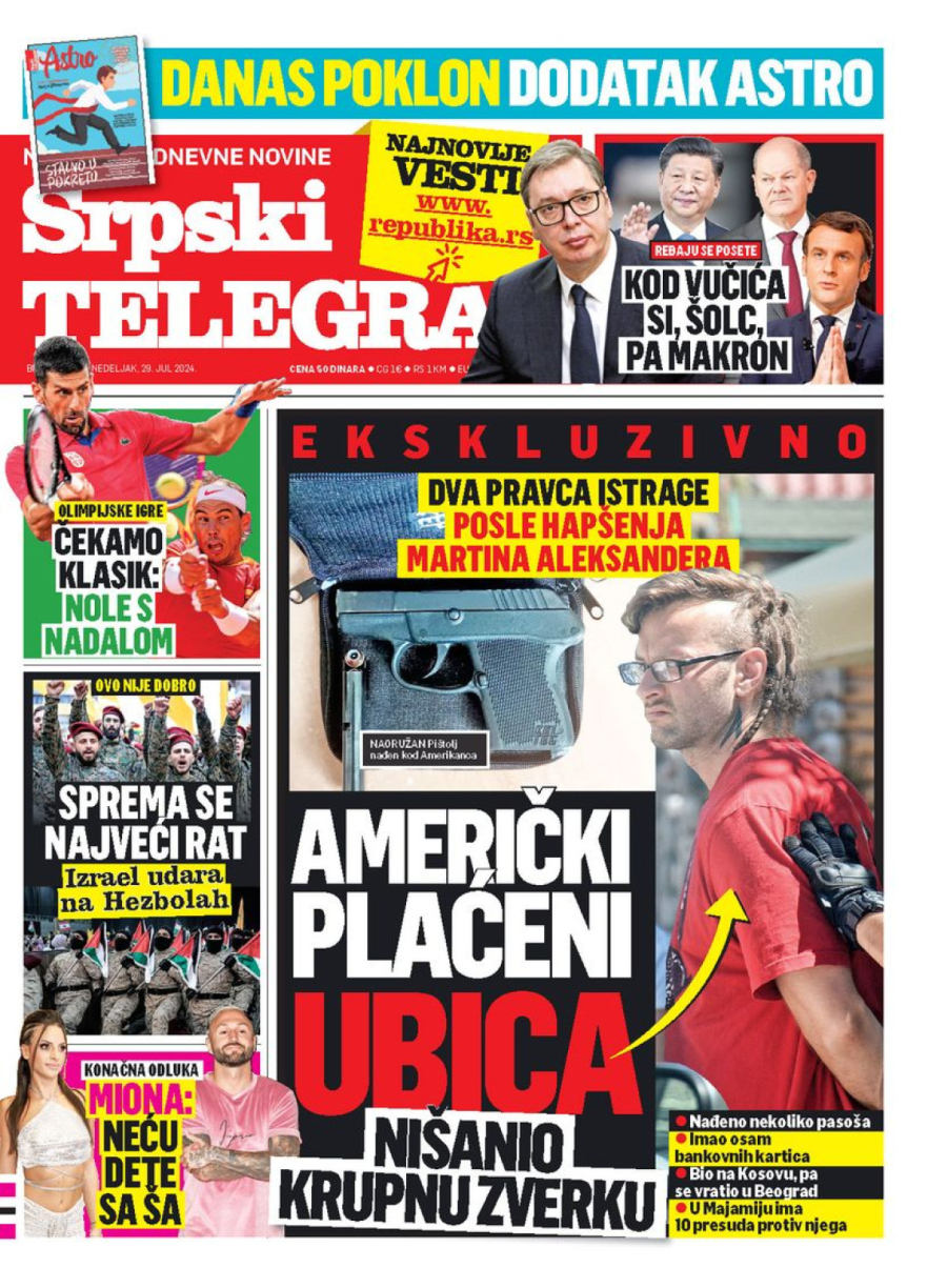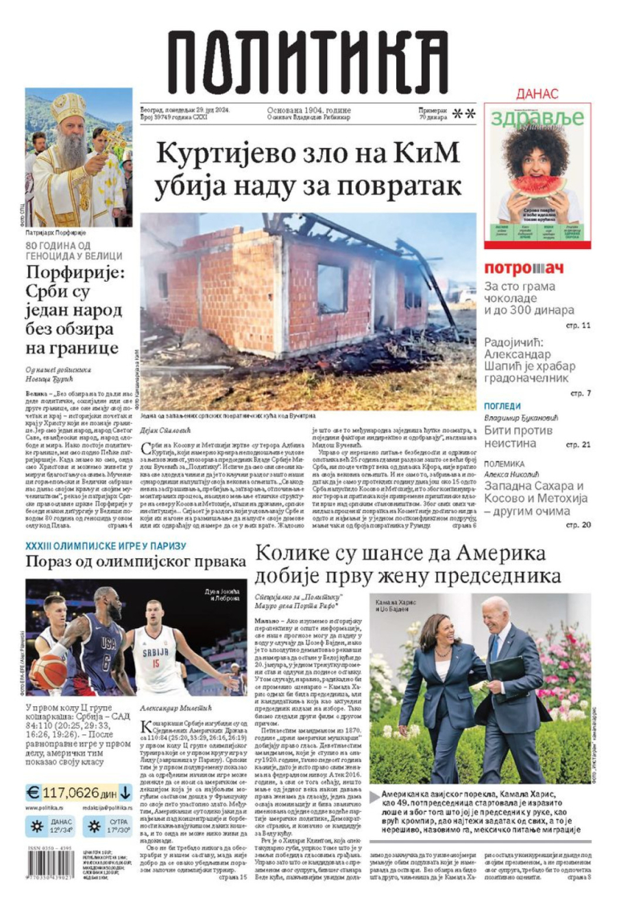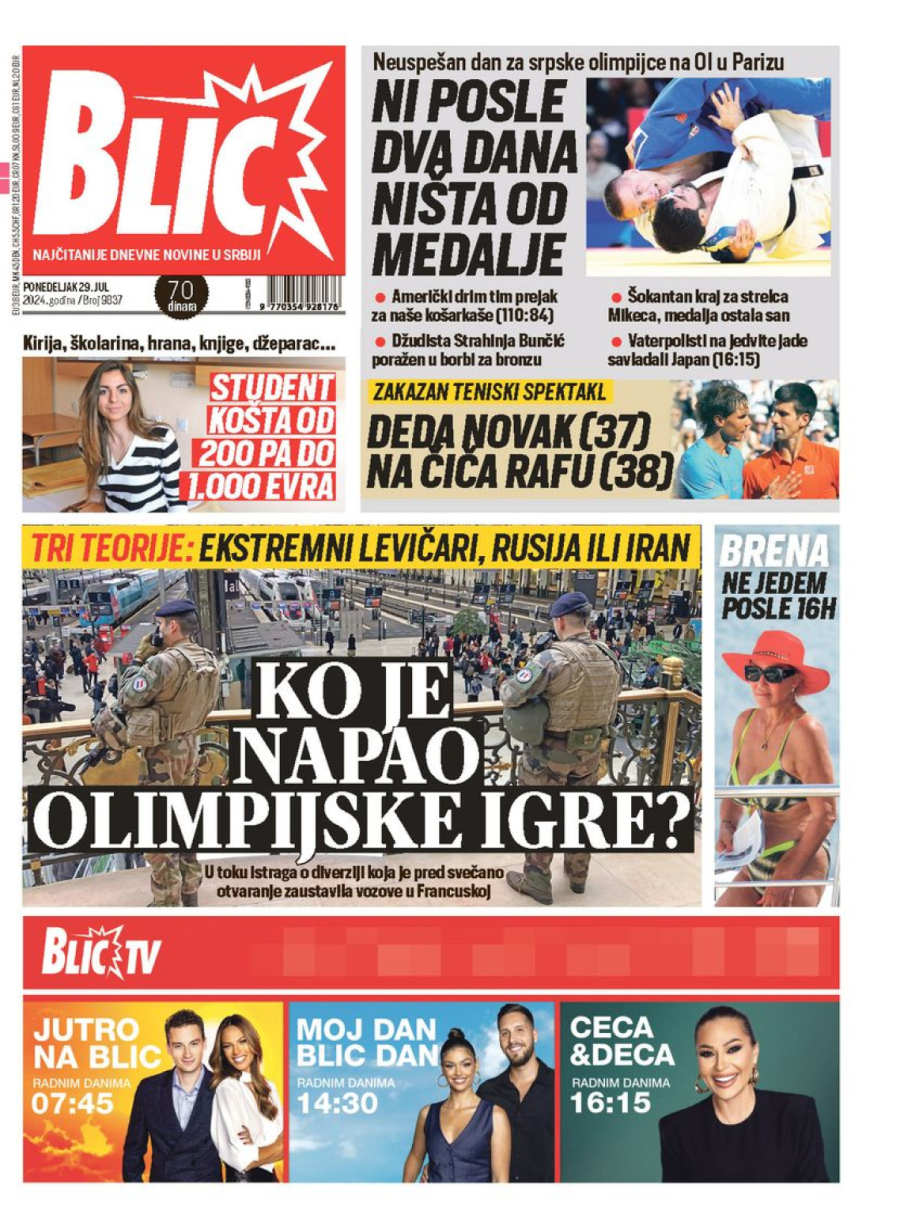 Dnevne novine u Srbiji za ponedeljak, 29. jul 2024. godine, na naslovnim stranama najavljuju brojne aktuelne društveno-političke teme i donose ekskluzivne priče.