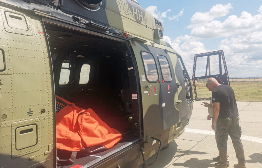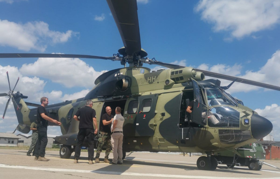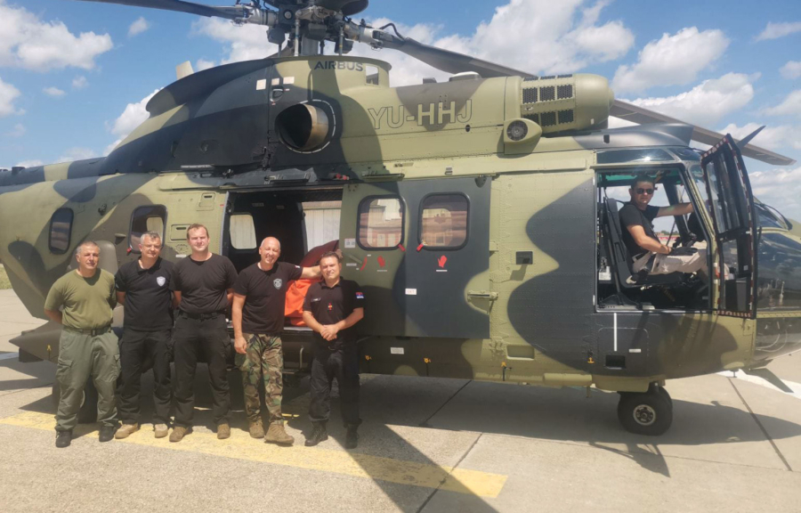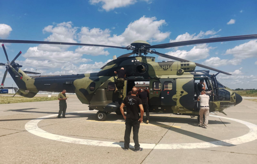 Helikopter MUP-a Srbije "Airbus H215 Super Puma", nosivosti tri tone vode, sa šest pripadnika Helikopterske jedinice i pripadnikom Sektora za vanredne situacije, upućen je na osnovu dogovora predsednika Srbije Aleksandra Vučića i predsednice Severne Makedonije Gordane Siljanovski Davkove.