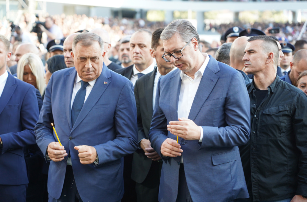 "Danas gledamo masovne napade na Srbiju i predsednika Vučića, na Srbiju koja se digla. Ne očekujte samo da vam država da, borite se za državu. Ako toga nema, nećemo uspeti. Okupimo se oko ideje koja se zove Srbija kao država, i Republika Srpska kao država. Ako budemo podeljeni i mali, onda ćemo ponovo biti lak plen", kazao je Dodik.