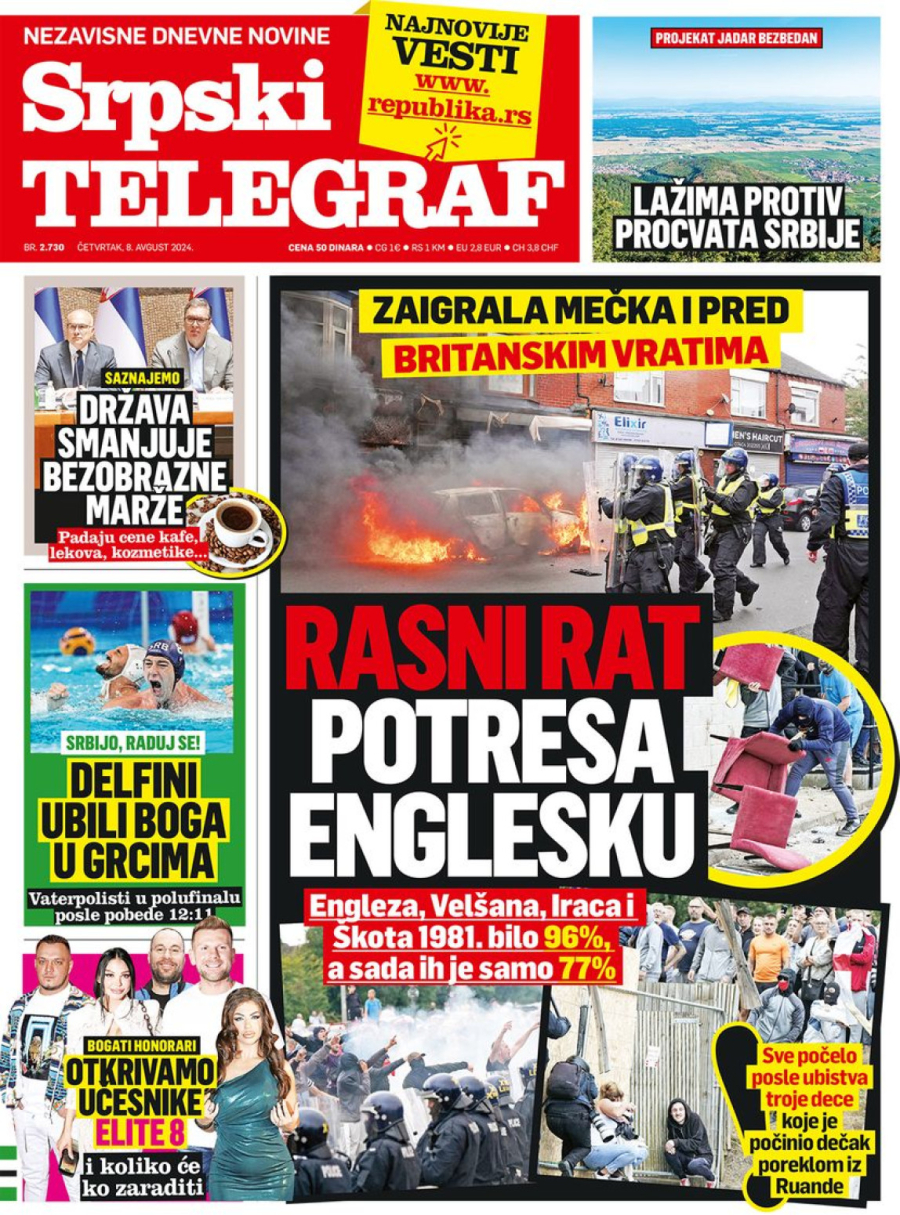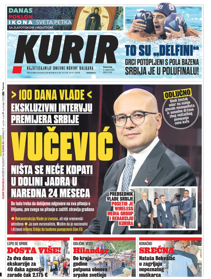 Dnevne novine u Srbiji za četvrtak, 8. avgust 2024. godine, na naslovnim stranama najavljuju brojne aktuelne društveno-političke teme i donose ekskluzivne priče.