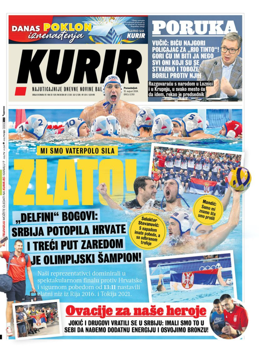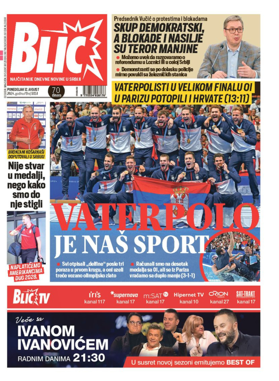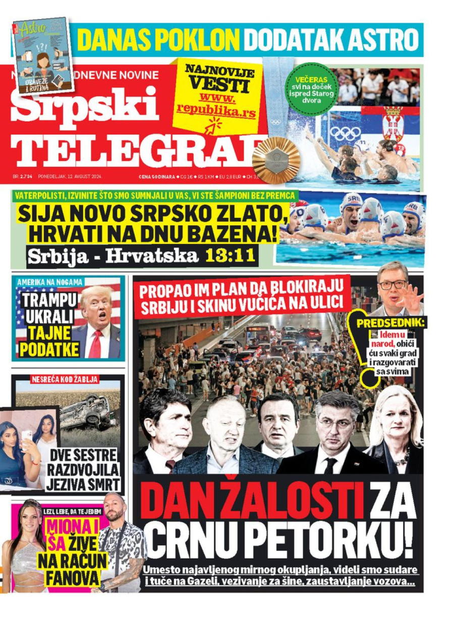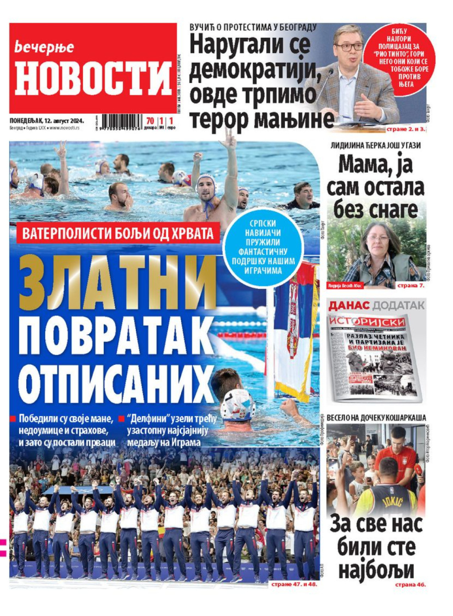 Dnevne novine u Srbiji za ponedeljak, 12. avgust 2024. godine, na naslovnim stranama najavljuju brojne aktuelne društveno-političke teme i donose ekskluzivne priče.