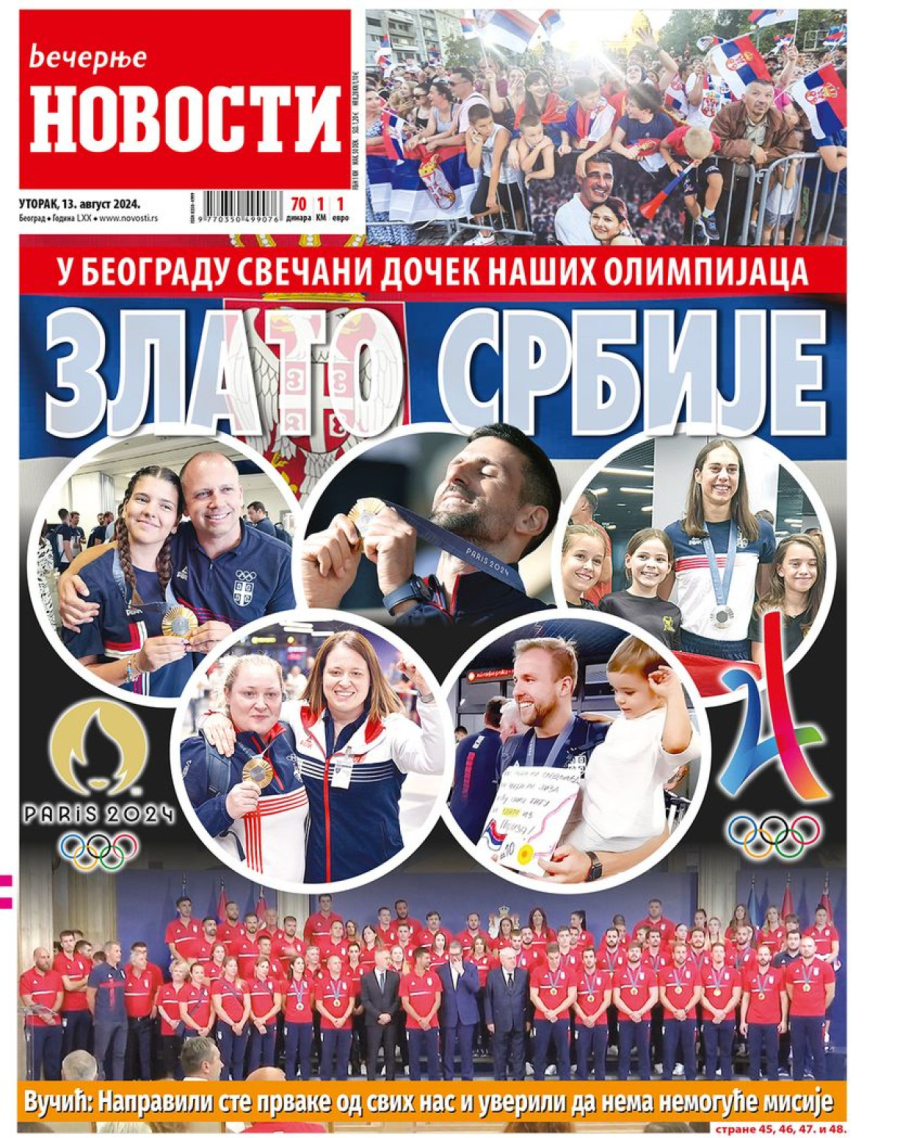 Novine: "Zlato Srbije"; "Svuda pođi sa medaljom kući dođi"