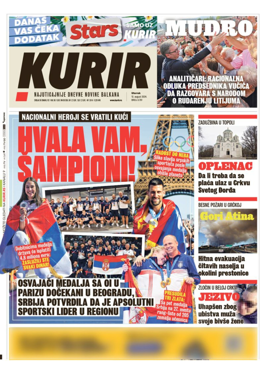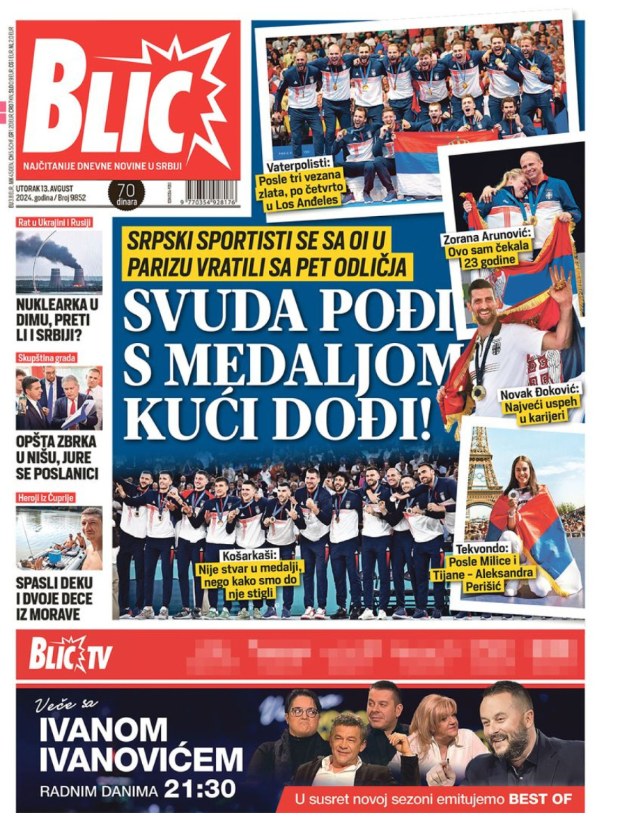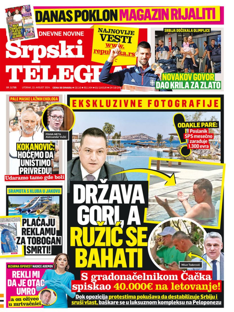 Dnevne novine u Srbiji za utorak, 13. avgust 2024. godine, na naslovnim stranama najavljuju brojne aktuelne društveno-političke teme i donose ekskluzivne priče.