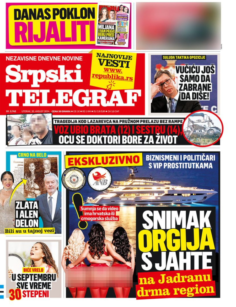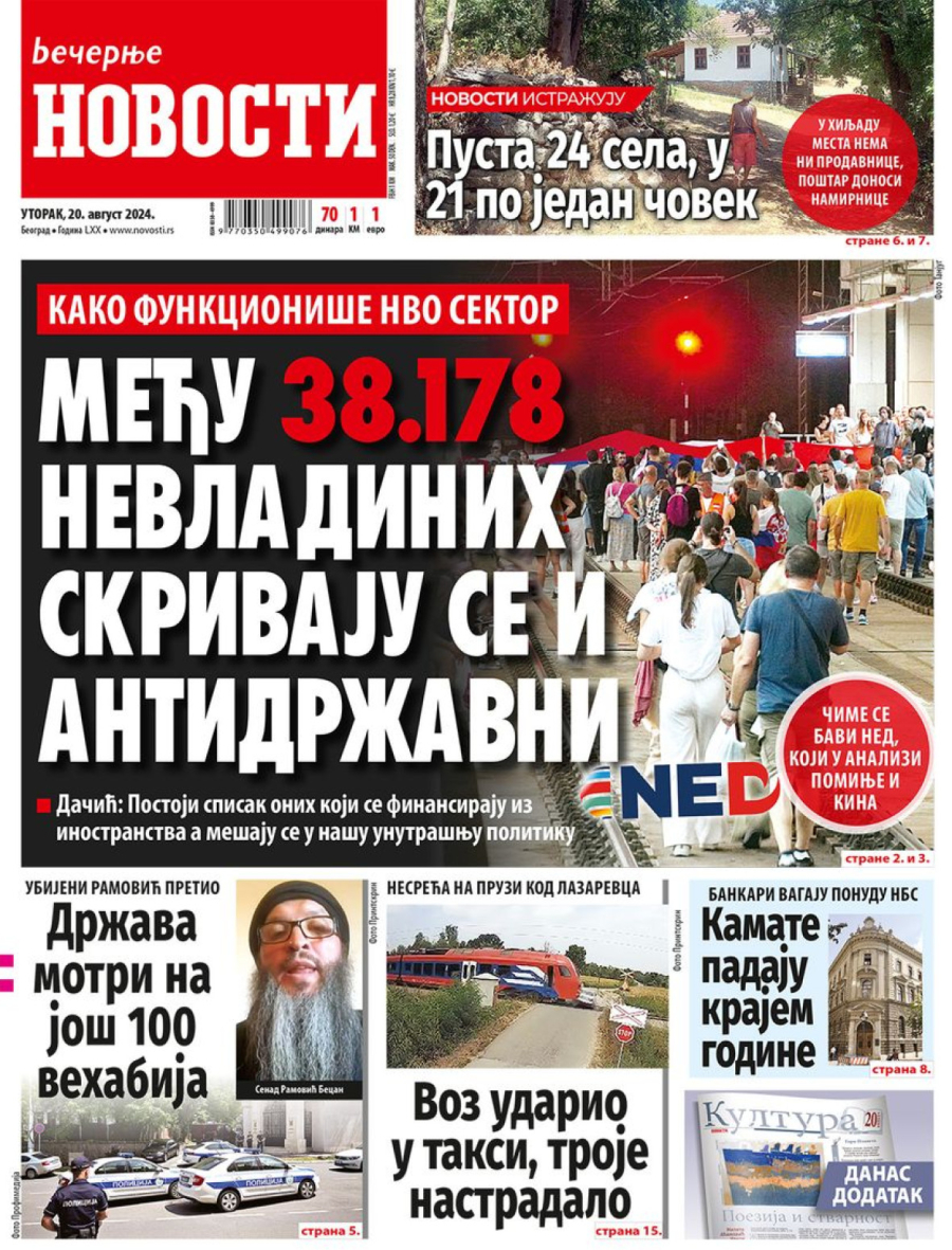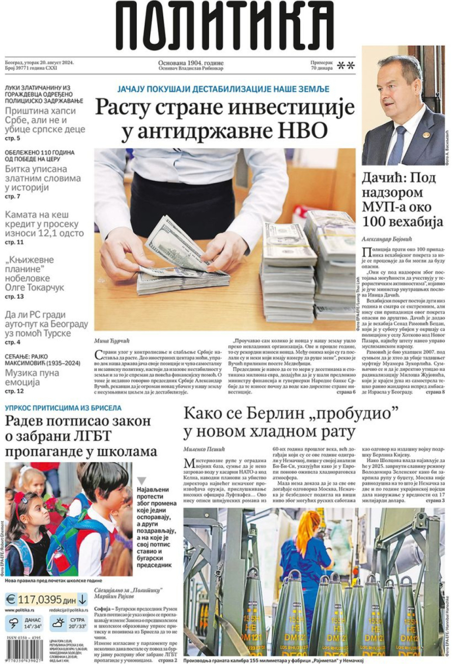 Dnevne novine u Srbiji za utorak, 20. avgust 2024. godine, na naslovnim stranama najavljuju brojne aktuelne društveno-političke teme i donose ekskluzivne priče.