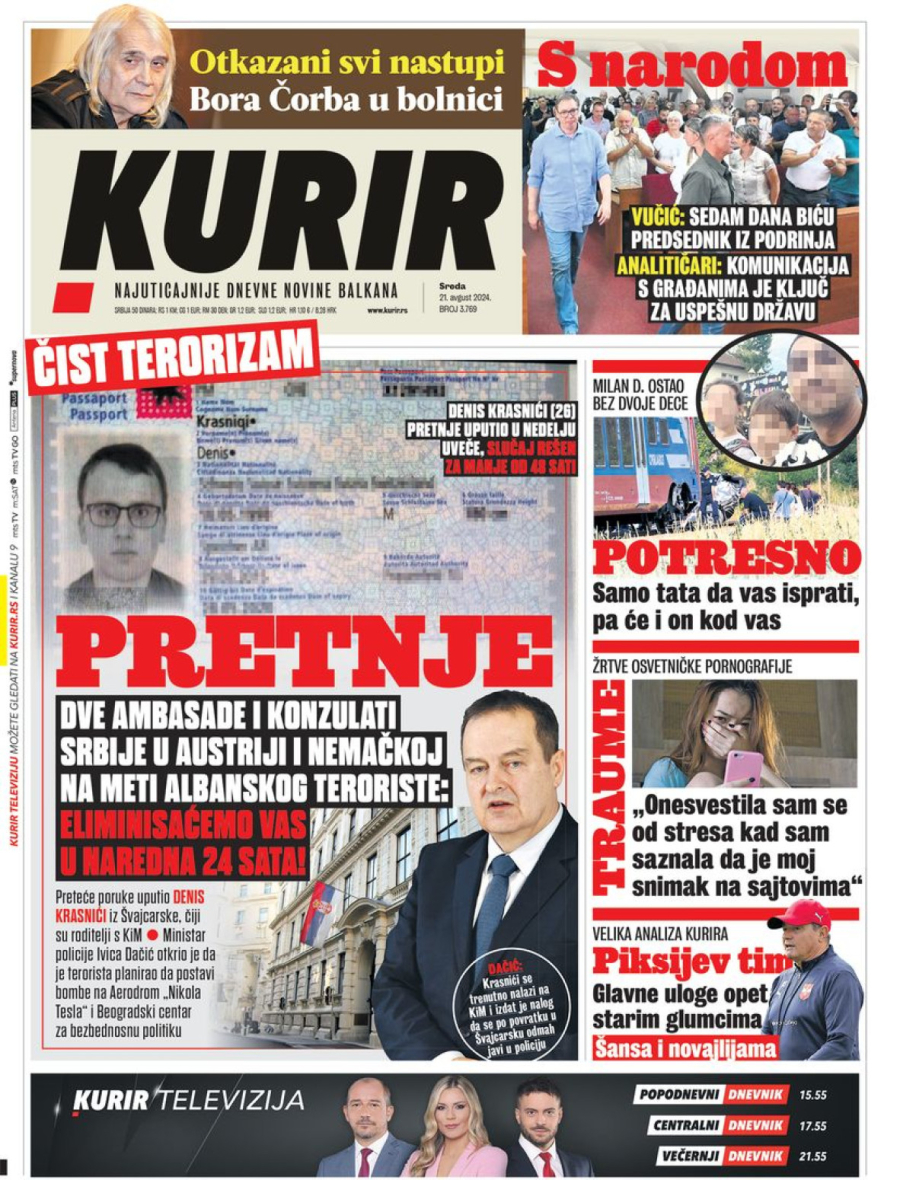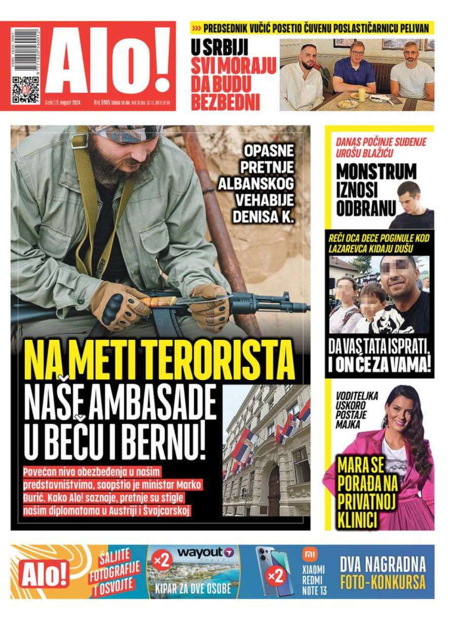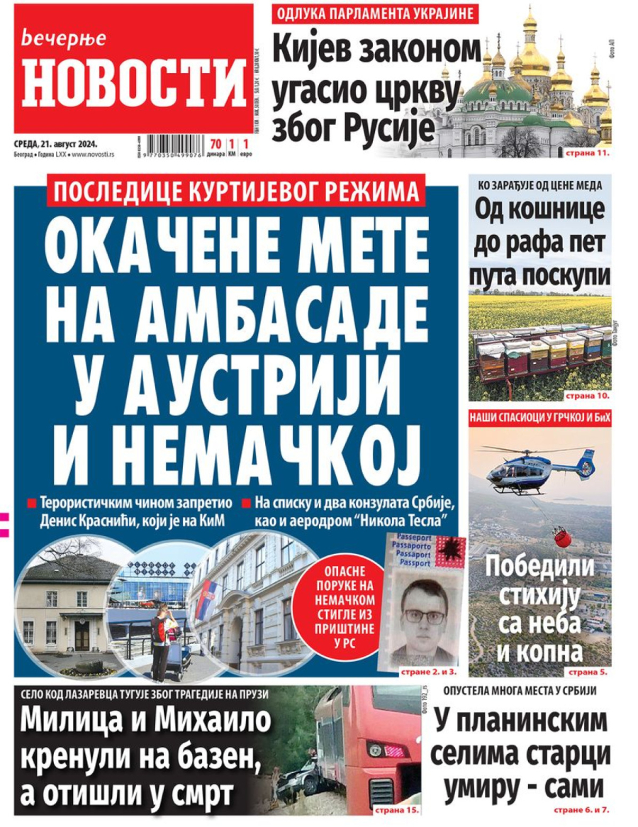 Novine: "Pretnje"; "Okačene mete na ambasade u Austriji i Nemačkoj"