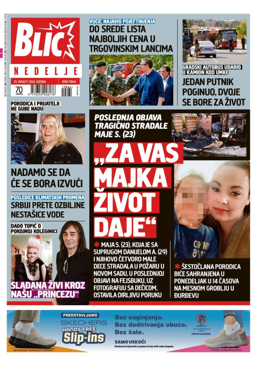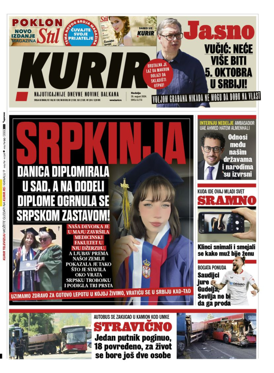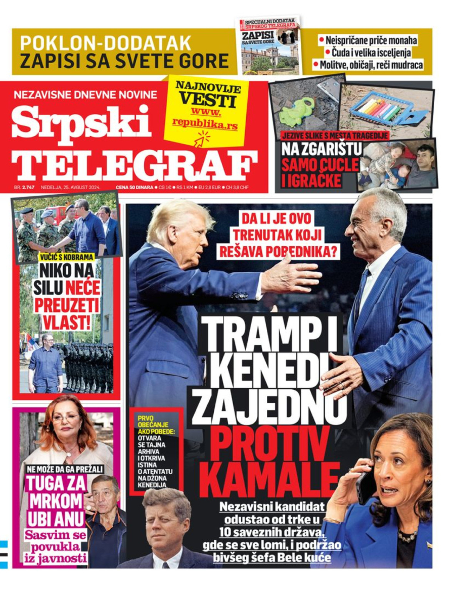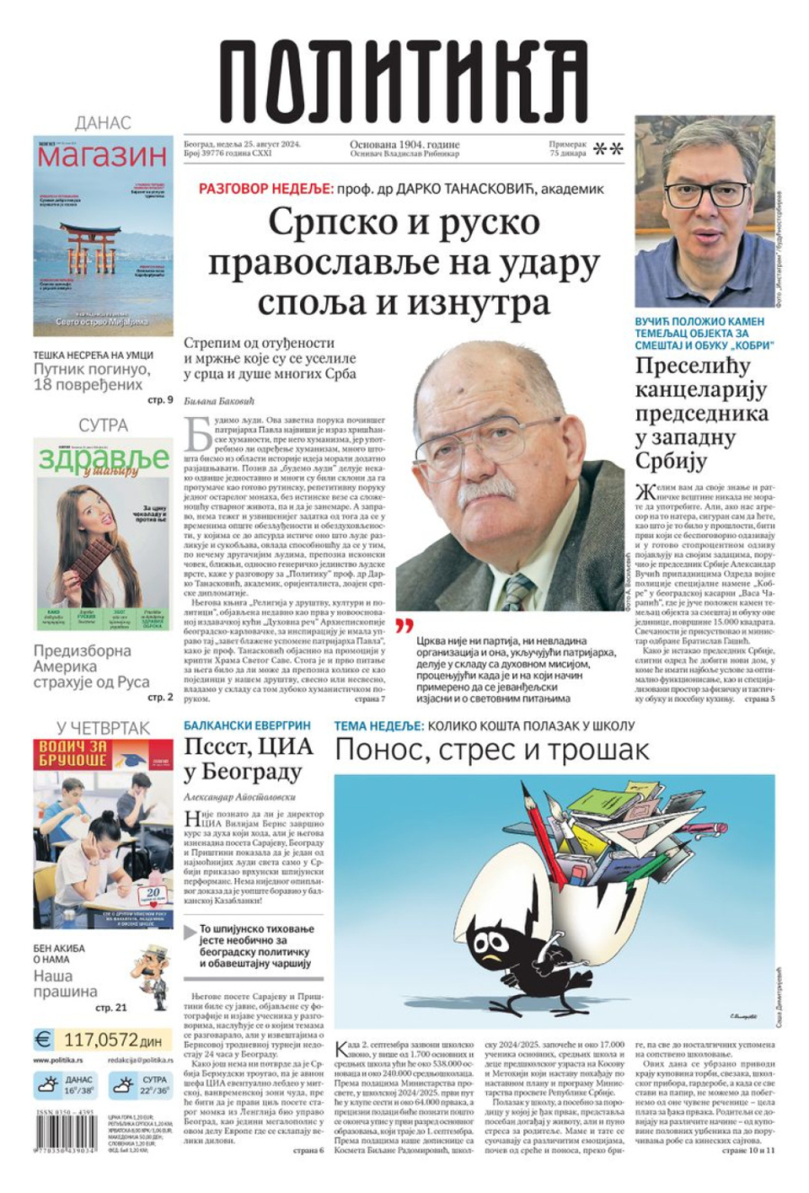 Dnevne novine u Srbiji za nedelju, 25. avgust 2024. godine, na naslovnim stranama najavljuju brojne aktuelne društveno-političke teme i donose ekskluzivne priče.
