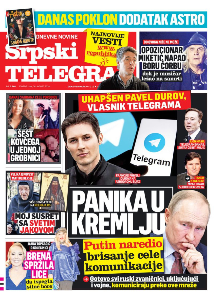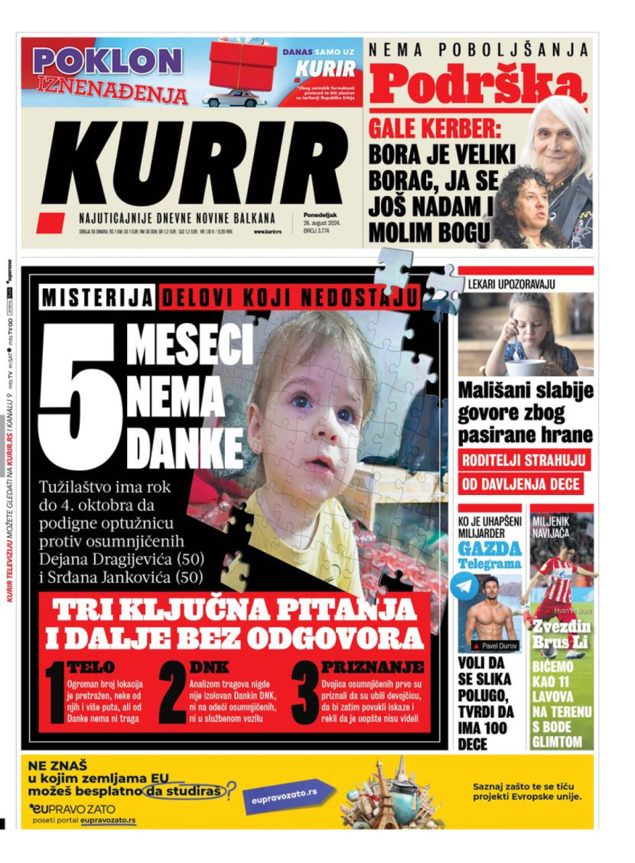 Dnevne novine u Srbiji za ponedeljak, 26. avgust 2024. godine, na naslovnim stranama najavljuju brojne aktuelne društveno-političke teme i donose ekskluzivne priče.