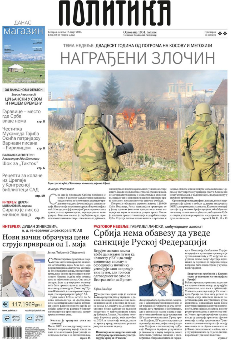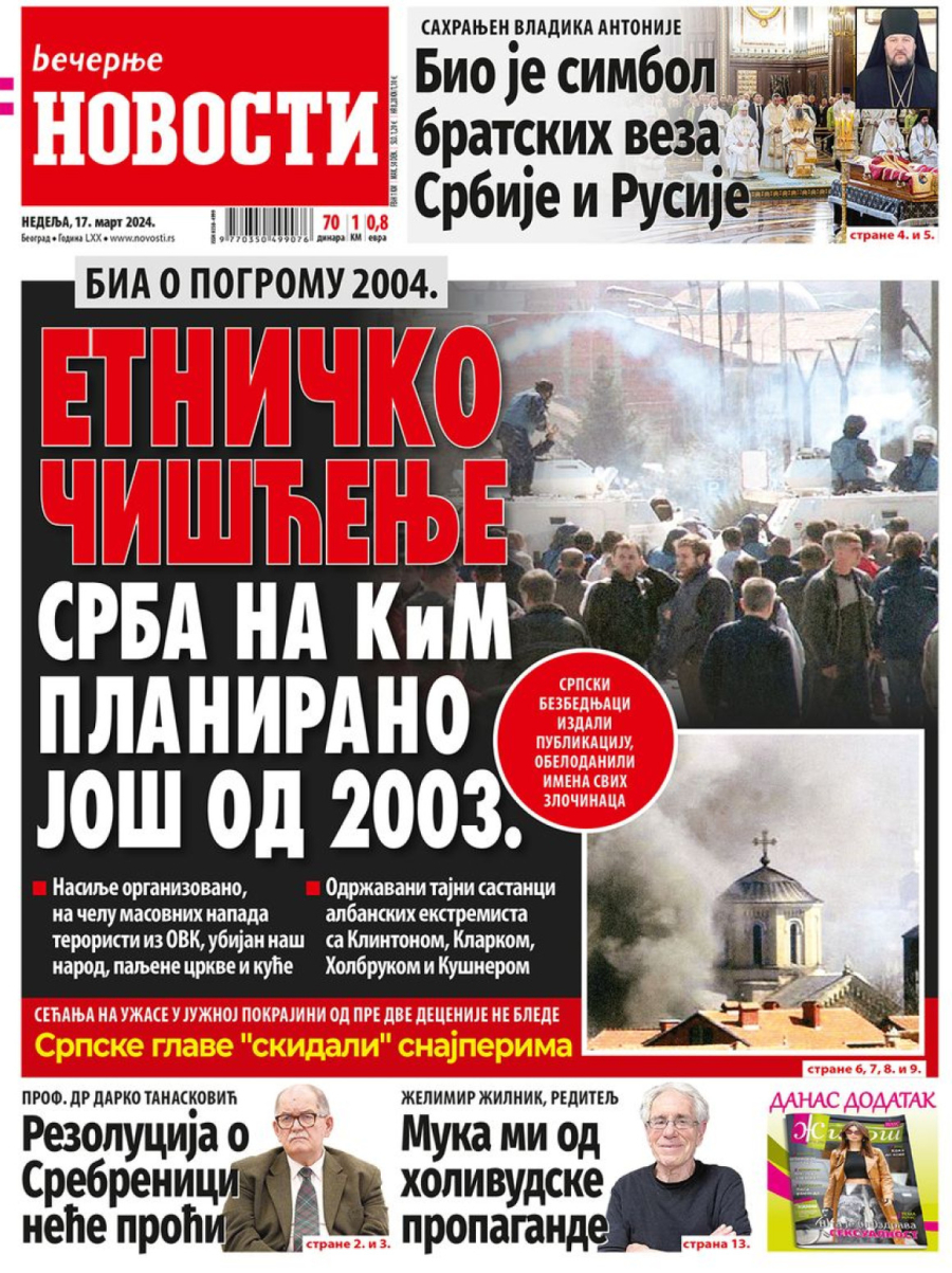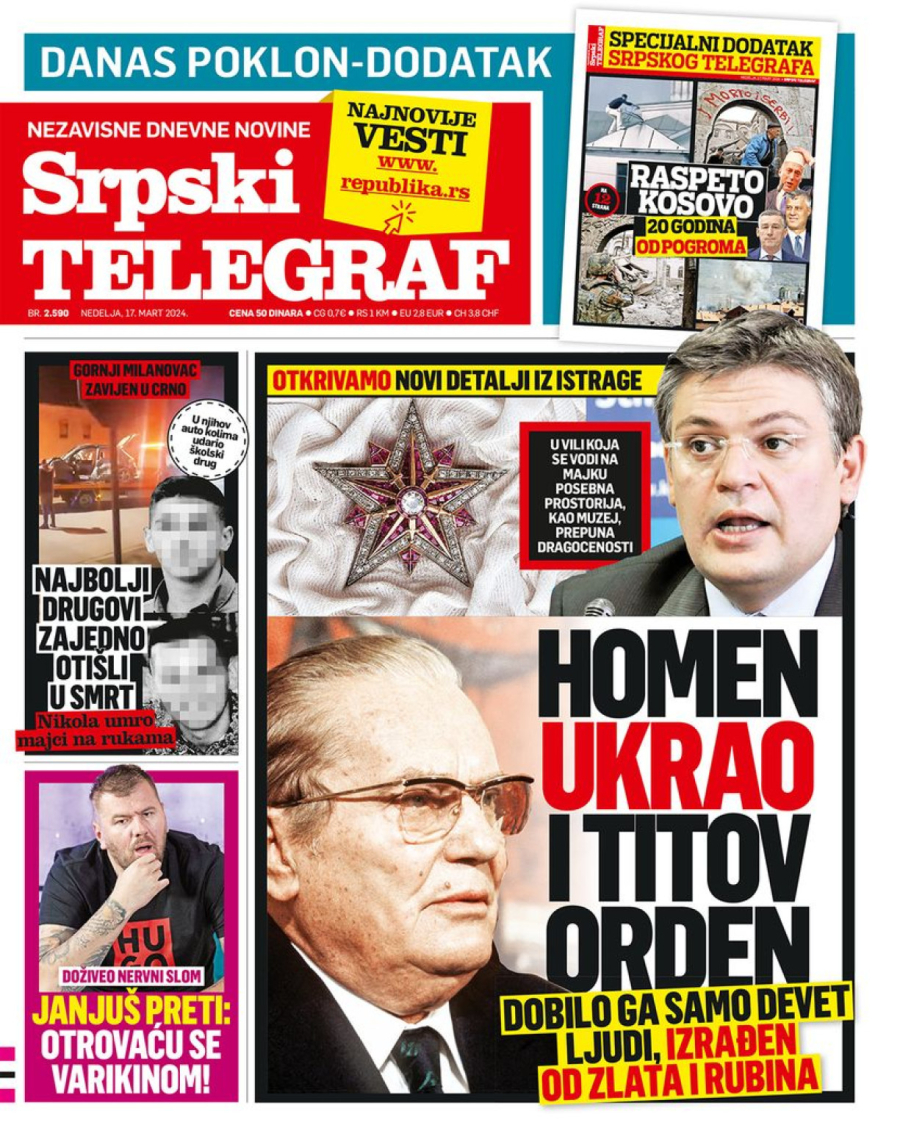 Dnevne novine u Srbiji za nedelju, 17. mart 2024. godine, na naslovnim stranama najavljuju brojne aktuelne društveno-političke teme i donose ekskluzivne priče.