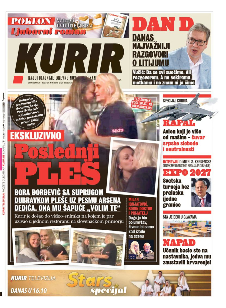 Novine: "Poslednji oproštaj od Bore Đorđevića"; "Dan D – najvažniji razgovori o litijumu"