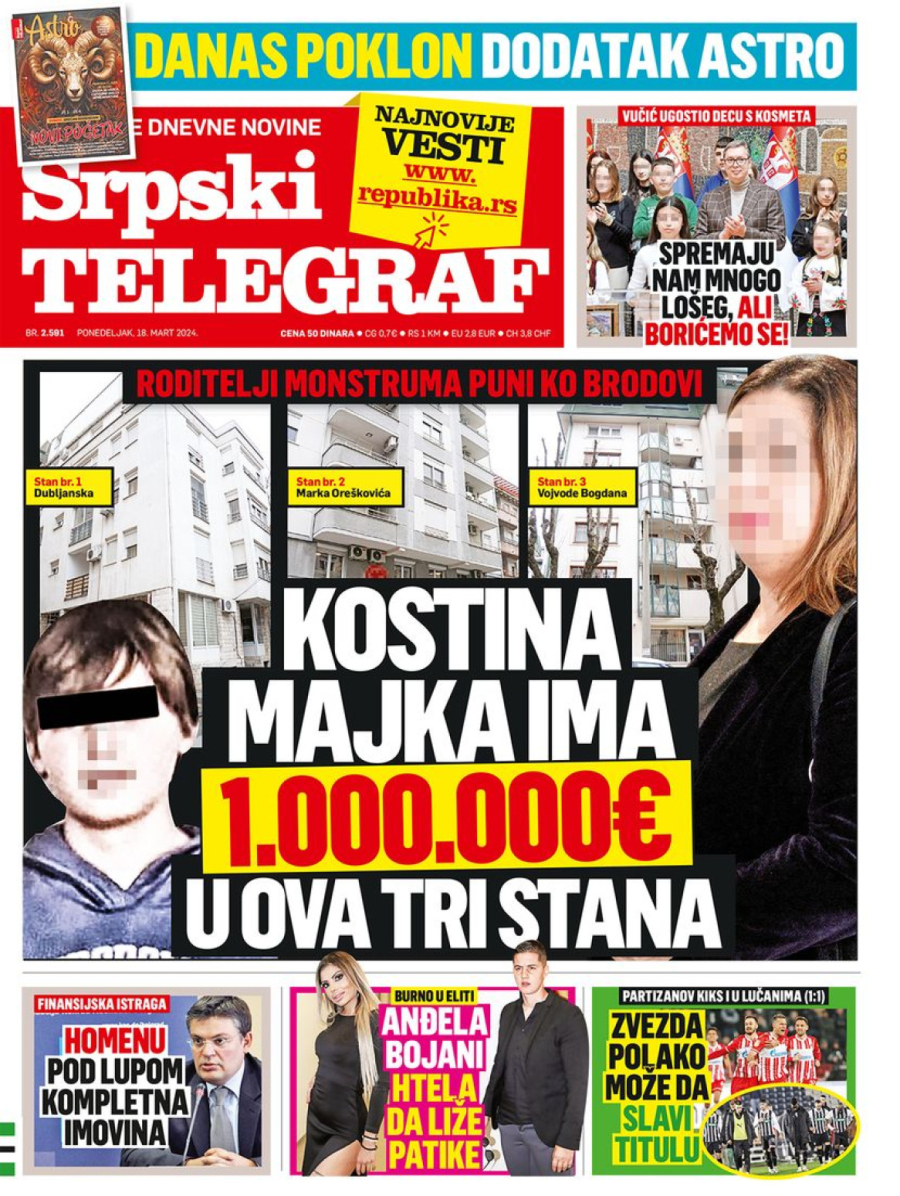Dnevne novine u Srbiji za ponedeljak, 18. mart 2024. godine, na naslovnim stranama najavljuju brojne aktuelne društveno-političke teme i donose ekskluzivne priče.