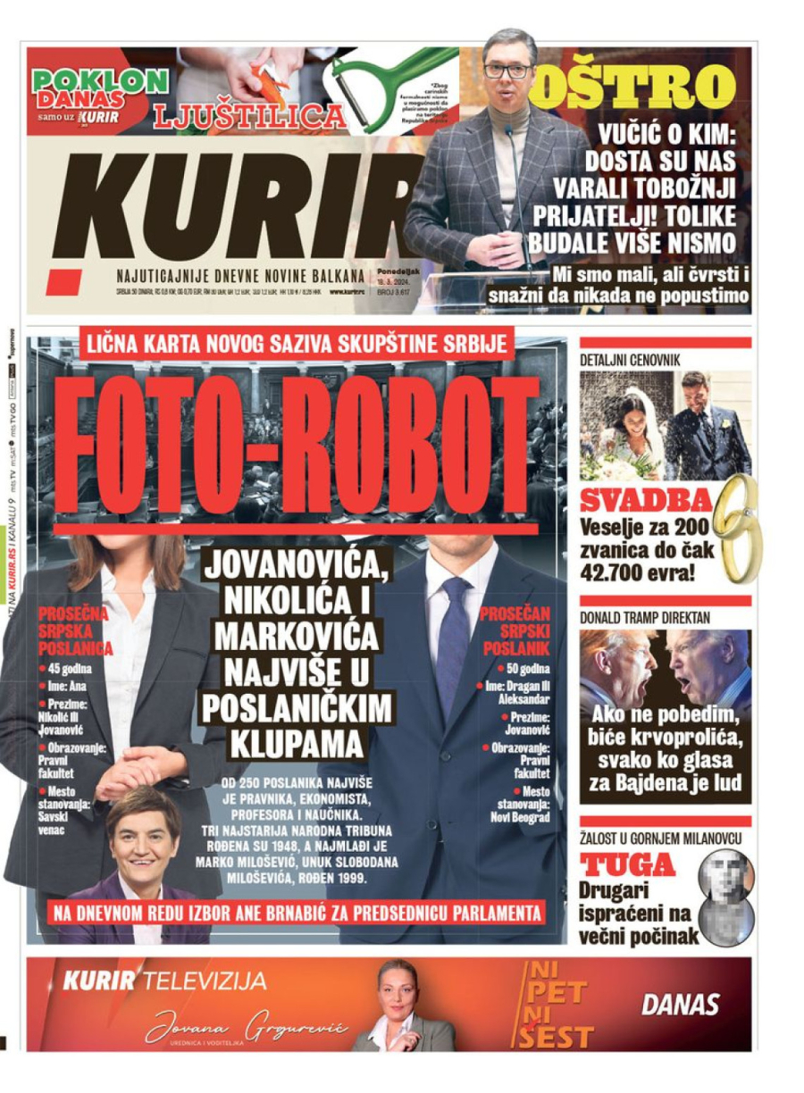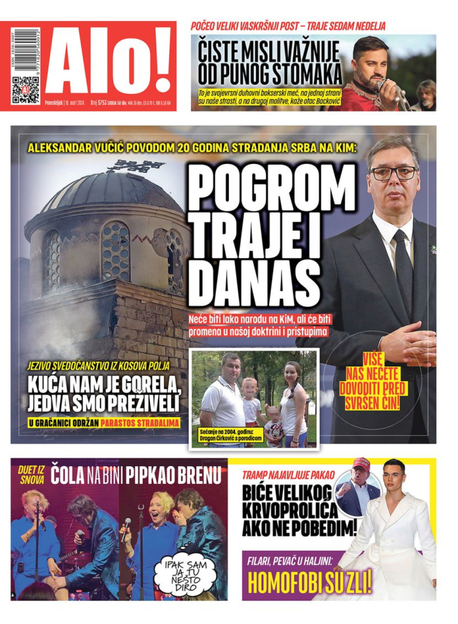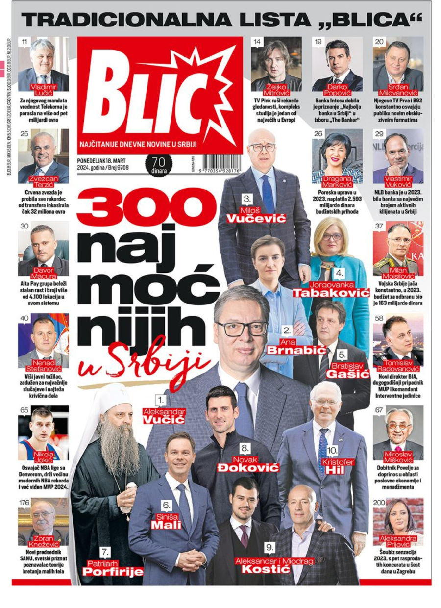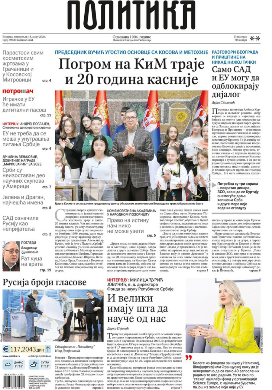 Novine: "Pogrom na KiM traje i 20 godina kasnije"; "300 najmoćnijih u Srbiji"