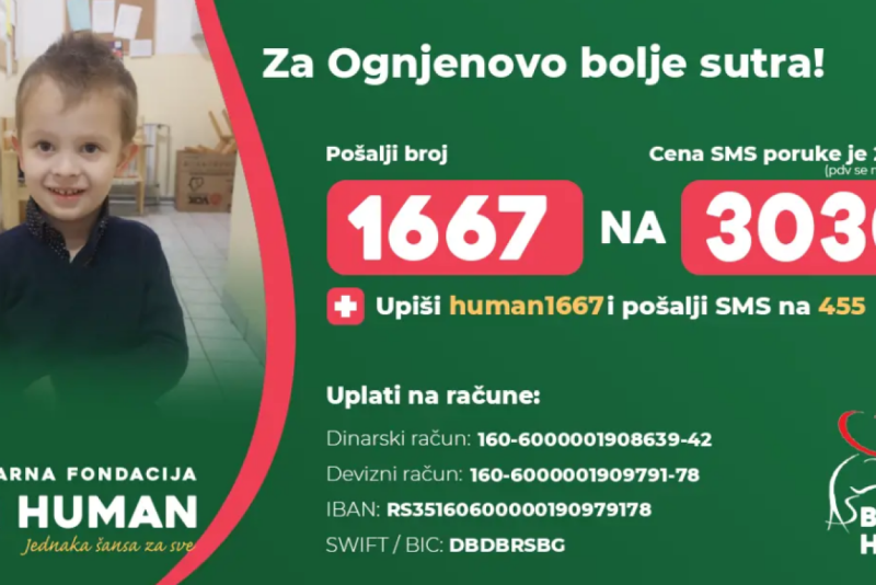 Humanitarna fondacija "Budi human - Aleksandar Šapić" prikuplja novčana sredstva za Ognjena Ristića (2020).