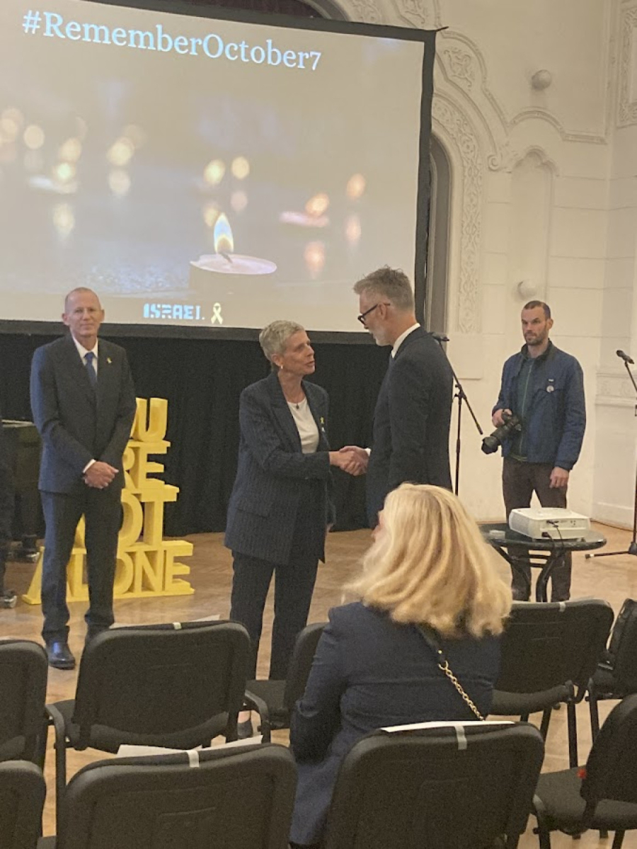 Večeras je ambasada Izraela obeležila godišnjicu terorističkog napada Hamasa na Izrael, kojim je napeta situacija na Bliskom istoku eskalirala u rat.