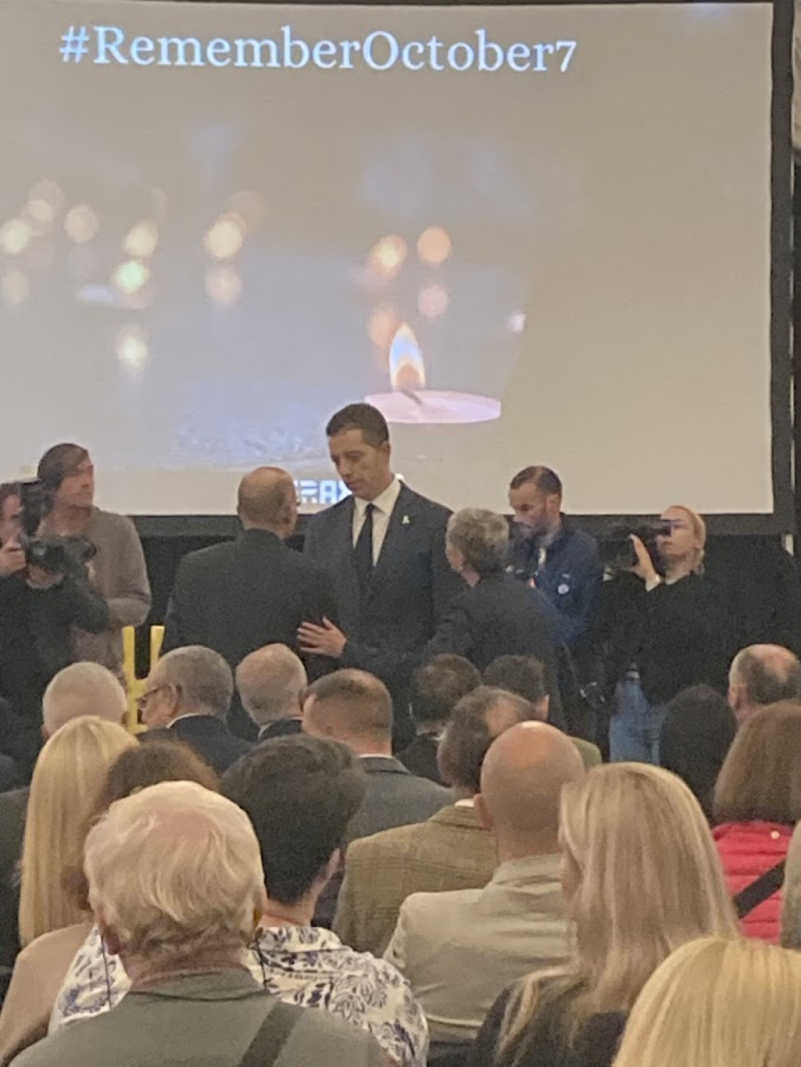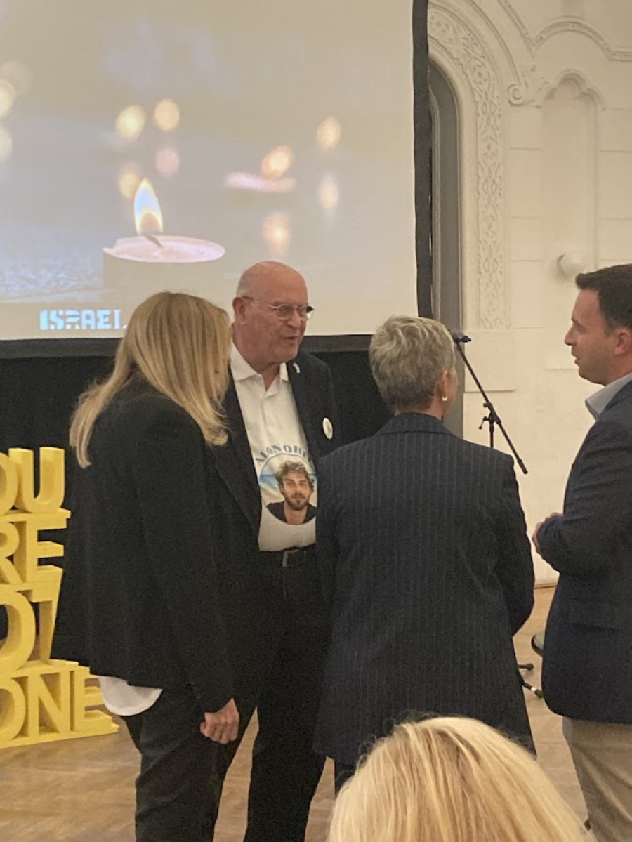 Nakon nje prisutnima se obratio deda Alona Ohela, koji je jedan od stotine mladih koji su kidnapovani tog 7. oktobra. On se zahvalio svima koji stoje uz njegovu porodicu u "ovim teškim trenucima".
