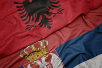 Šok prizor na bilbordu u Valjevu - crni, dvoglavi orao koji se nalazi na albanskoj zastavi, davi belog orla, obeležje srpske zastave.