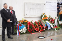 Polaganje venaca otpočelo je intoniranjem himne u izvođenju dečjeg hora, a vence su položili osnivač Pokreta socijalista Aleksandar Vulin, ambasador Rusije Aleksandar Bocan Harčenko i ambasador Kube Lejde Ernesto Rodriges Ernandes. Vulin je poručio da "za male i slobodne narode nema pravde".