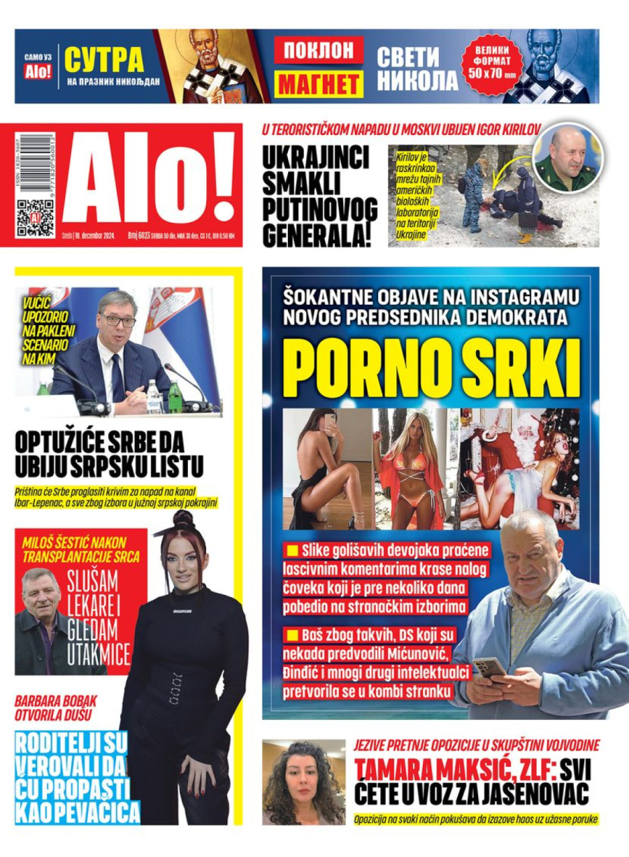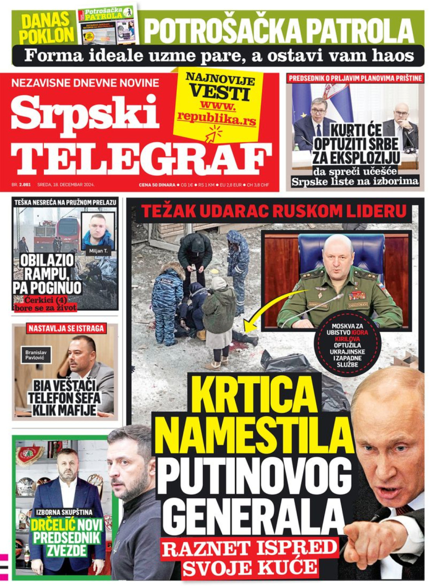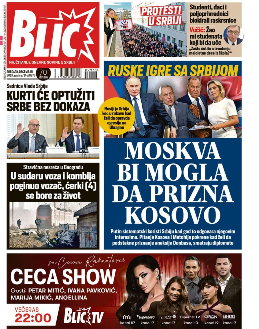 Dnevne novine u Srbiji za sredu, 18. decembar 2024. godine, na naslovnim stranama donose brojne aktuelne društveno-političke teme i ekskluzivne priče.