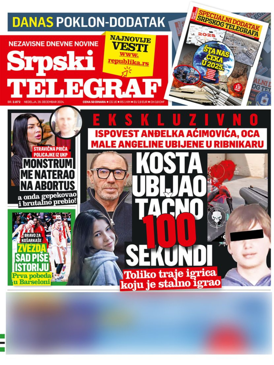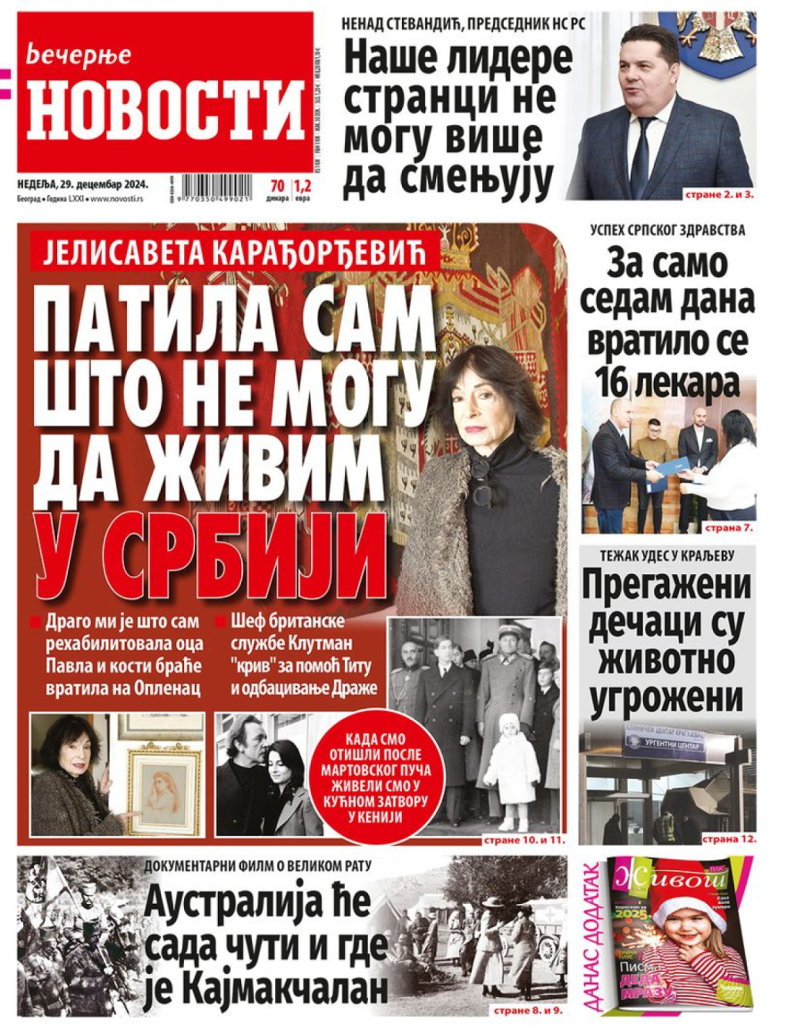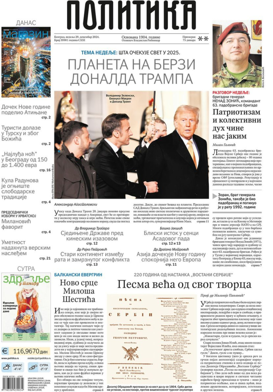 Dnevne novine u Srbiji za nedelju, 29. decembar 2024. godine, na naslovnim stranama najavljuju brojne aktuelne društveno-političke teme i donose ekskluzivne priče.