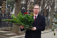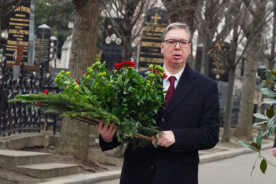 Vučić, ministar kulture Nikola Selaković i brojni drugi, kolege, saradnici, prijatelji i poštovalaci, došli su vencima do kapele na Novom groblju gde će biti održano opelo.