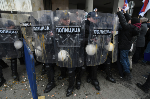 "Bez ikakvog povoda, jedan broj okupljenih gađao je pripadnike policije topovskim udarima, kamenicama, jajima, jogurtom, farbom i drugim predmetima, iako su policijski službenici, isključivo, preduzimali radnje sa ciljem obezbeđivanja rada gradske Skupštine i očuvanja javnog reda i mira, što im je profesionalni zadatak i zakonska obaveza" navedeno je u saopštenju.