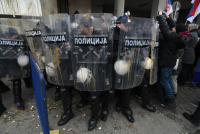 Iz PU NS ukazuju na činjenicu da su, u tim pokušajima dela okupljenih građana da probije kordon policije, povređena petorica policijskih službenika kojima se ukazuje lekarska pomoć.