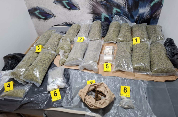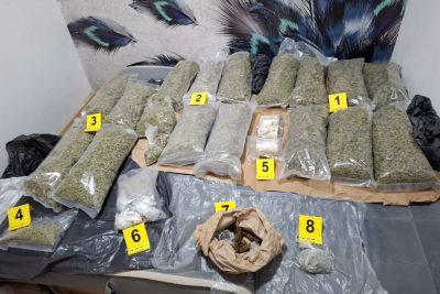 Policija je prilikom pretresa stana osumnjičenog pronašla i zaplenila 20 kilograma marihuane, dva kilograma kokaina, 30 grama heroina i veću količinu pištoljske municije.