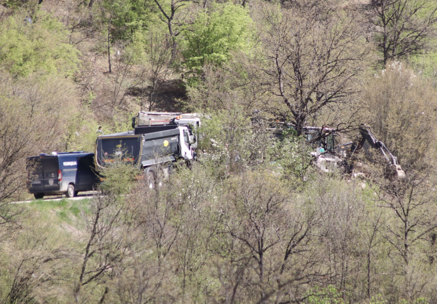 Prisutni su kamioni i buldožeri, a podignut je i dron, pišu Novosti.