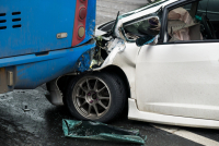 Prednji deo automobila je u potpunosti uništen, oboreni su znakovi kraj puta, a na autobusu su, osim uništenog prednjeg dela, polomljena stakla.