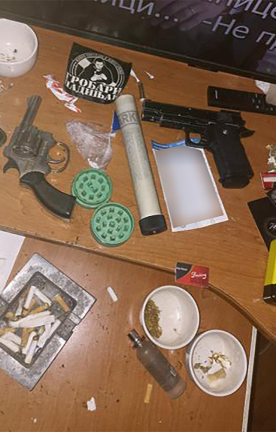 Naime, po naredbi Višeg suda u Beogradu, policijski službenici su izvršili pretres na 32 adrese na Karaburmi i Višnjičkoj banji i tom prilikom pronašli više komada vatrenog oružja, pirotehnička sredstva i neutvrđenu količinu različite opojne droge.