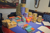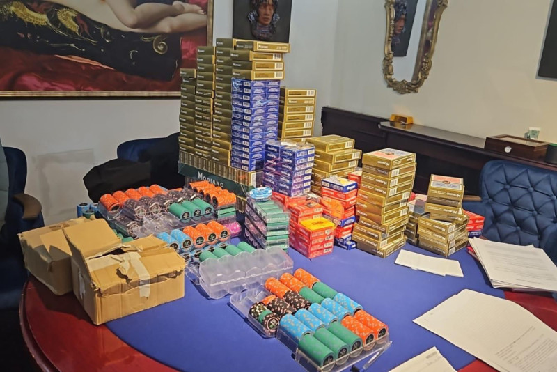 Privremeno je zaplenjena oprema za poker igre i to pet stolova, čipovi zatečeni u igri na stolu u različitim apoenima ukupne vrednosti 8.349 apoena, čipovi van stolova vrednosti 1,29 miliona apoena, 285 pakovanja karata za poker, kao i 7.650 evra gotovine za koju se sumnja da potiče od nelegalnog priređivanja igara na sreću.