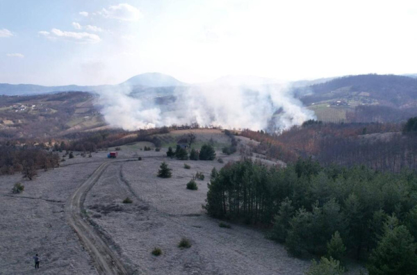 Požar je zahvatio veliku površinu pod šumom, teren je jako nepristupačan stoga je njegovo gašenje otežano.