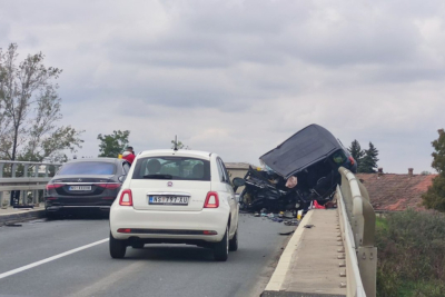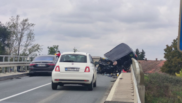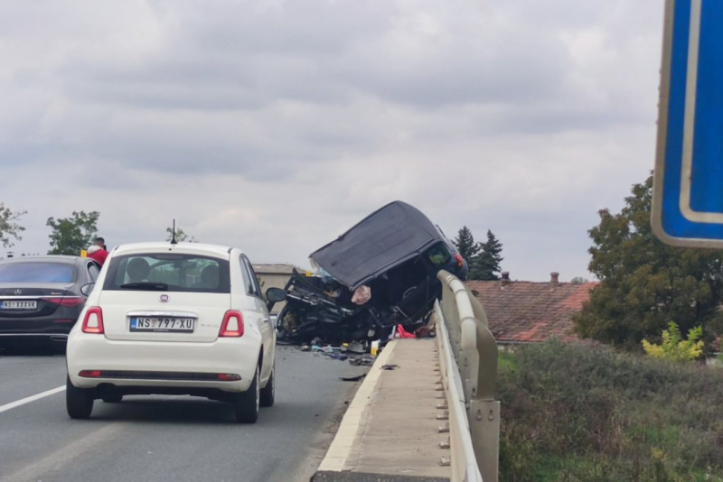 Na ulazu u Bački Petrovac iz pravca Novog Sada, na mostu dogodila se teška saobraćajka, a jedan automobil ostao je da visi na ivici mosta.