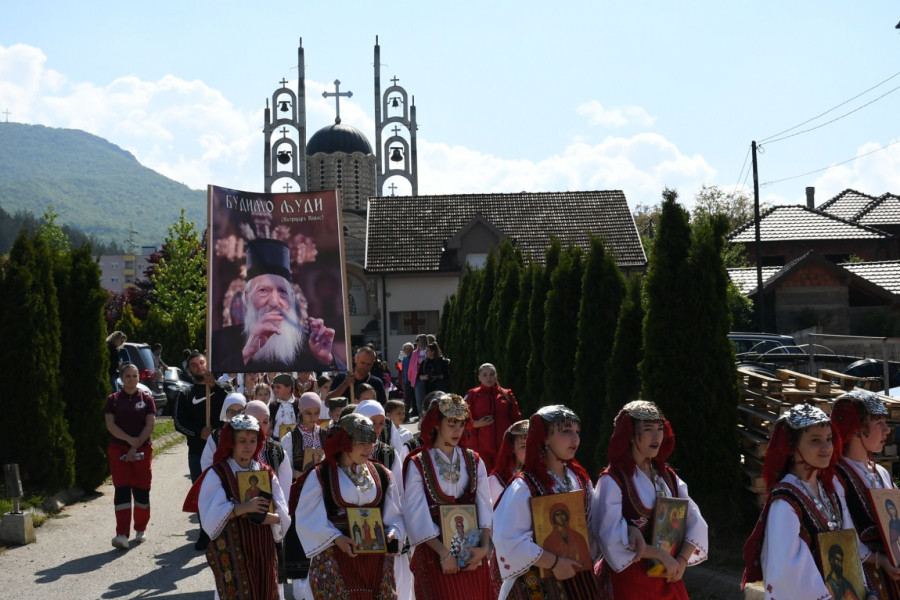 Nakon liturgije ulicama Leposavića je krenula litija, tokom koje je razvijena velika zastava Srbije duga više od 20 metara.