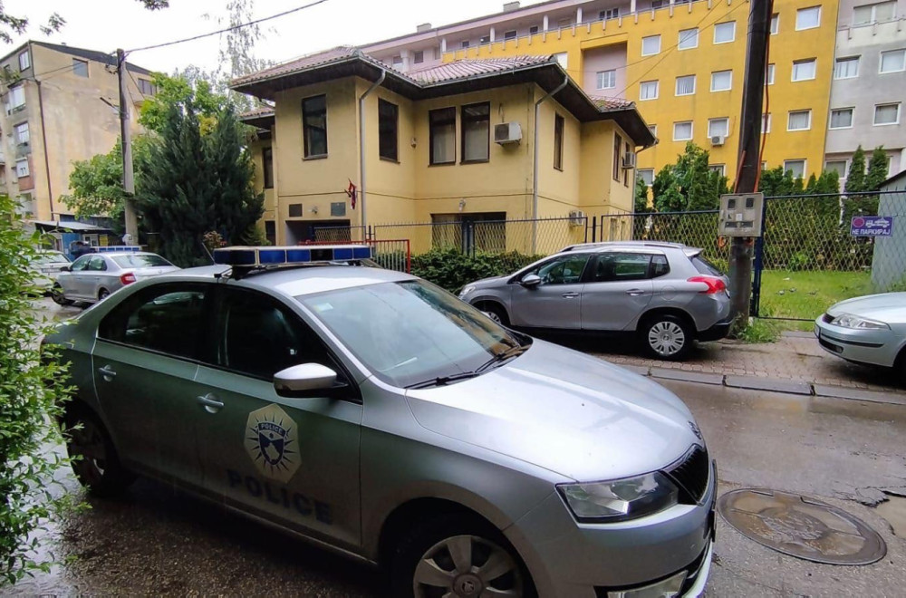 Ispred zgrade nalazi se nekoliko vozila Kosovske policije, a u zgradi su i inspektori u civilu.
