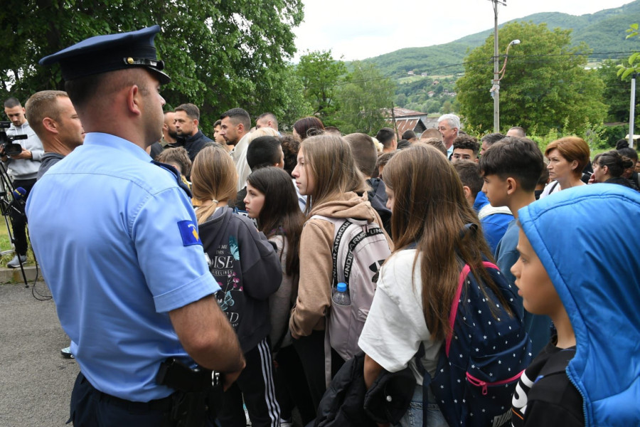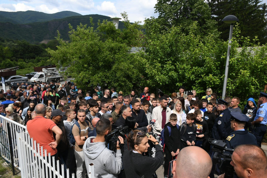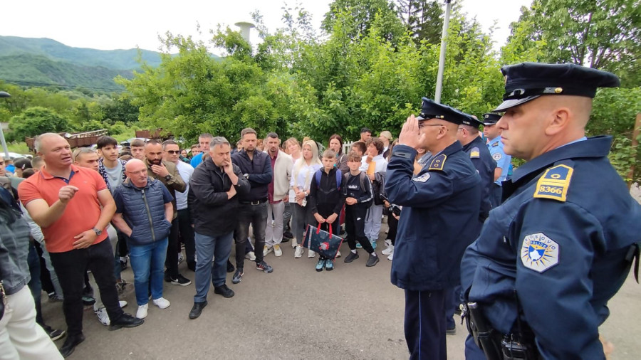 Okupljeni su izrazili nezadovoljstvo zbog jučerašnjeg ulaska gradonačelnika Leposavića Ljuljzima Hetemija i njegove zamenice u prostorije ove ustanove, uz asistenciju pripadnika Kosovske policije.