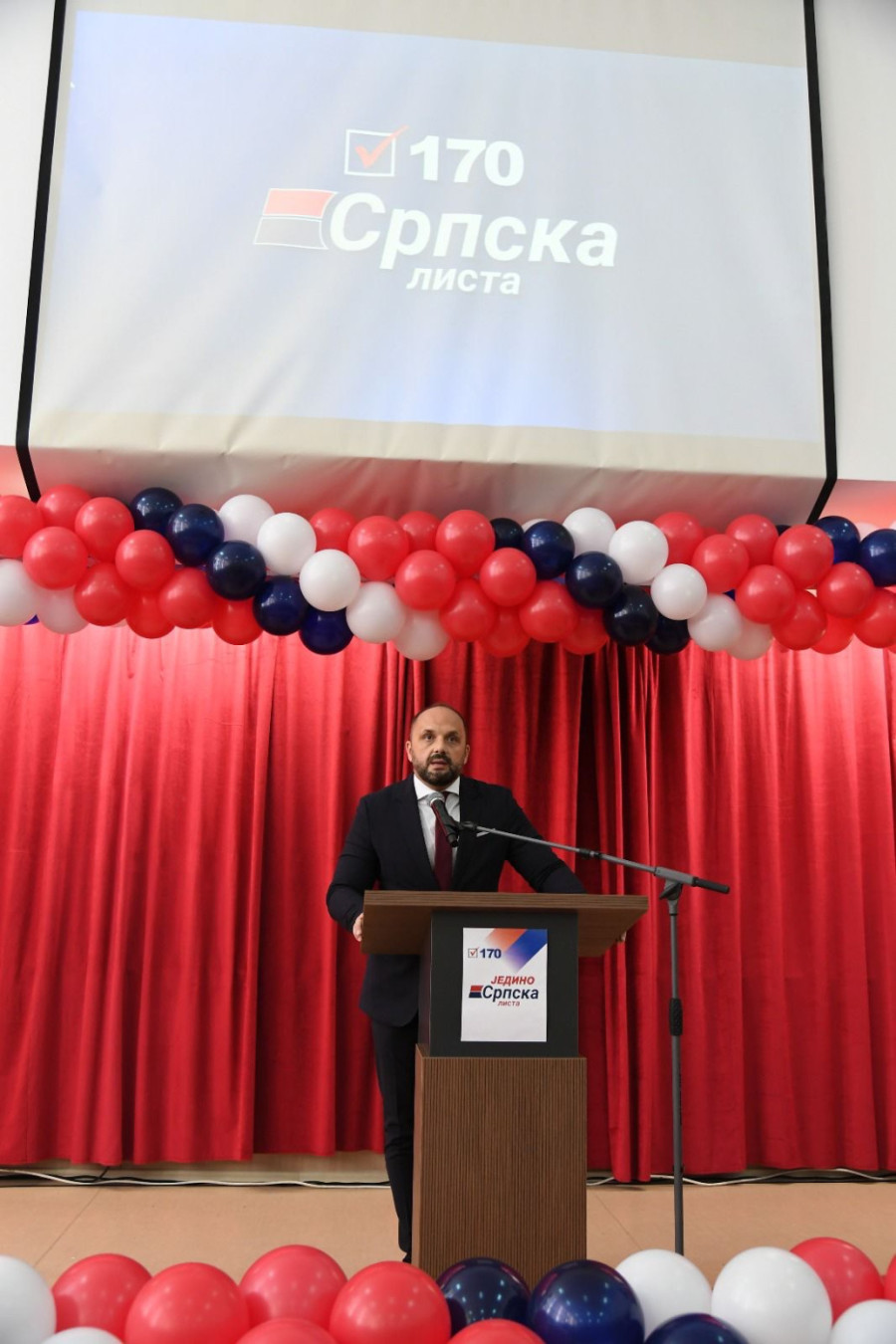 Kandidat za odbornika i direktorica Osnovne škole "Branko Radičević", Biljana Vukićević pozvala je prisutne da podrže Srpsku listu i da svoj glas daju, kako je rekla, pobedi Srpske liste i time osiguraju budućnost Srba u svojoj borbi za opstanak i ostanak na svojim ognjištima.