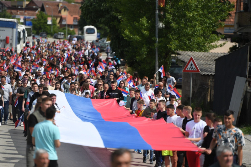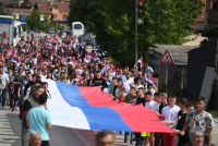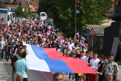 Građani su razvili veliku srpsku trobojku i u koloni prošetali gradskim ulicama, javlja izveštač Tanjuga.