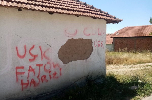 Na kući porodice Đurković, u selu Gojbulja kod Vučitrna, noćas su ispisani grafiti "UČK" i ime zločinca i teroriste Fatona Hajrizija koji je hladnokrvno ubio srpskog policajca Nikolu Krsmanovića, saopštila je danas Kancelarija Vlade Srbije za KiM.