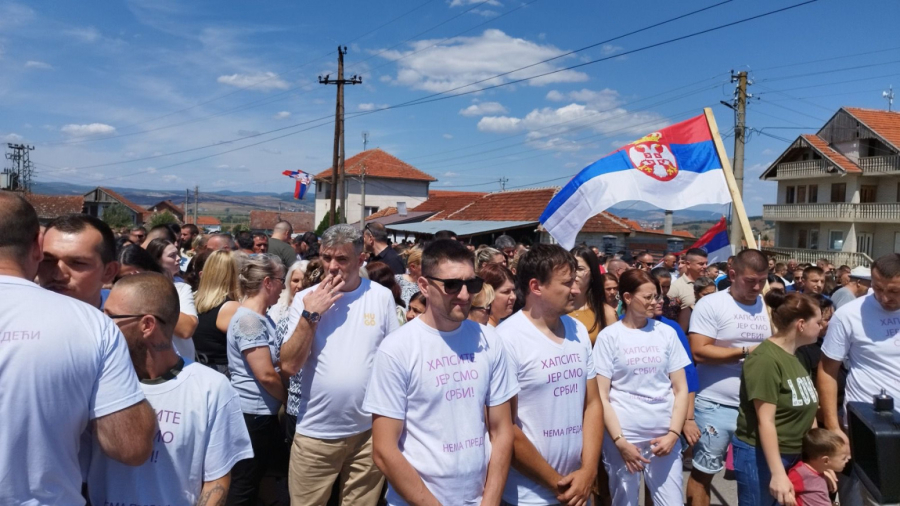 Više hiljada Srba iz Kosovskog Pomoravlja okupilo se danas na mirnom protestu zbog hapšenja petorice Srba zbog navodnih ratnih zločina.