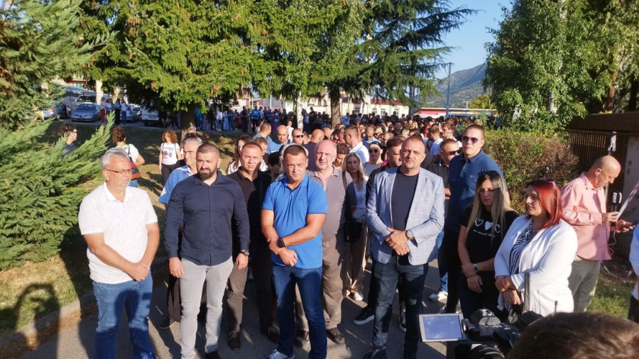 Radnici su se okupili i ispred zgrade u Kosovskoj Mitrovici u kojoj su se nalazile prostorije Pio fonda, Kancelarije za KiM, Kosovsko-mitrovačkog upravnog okruga.