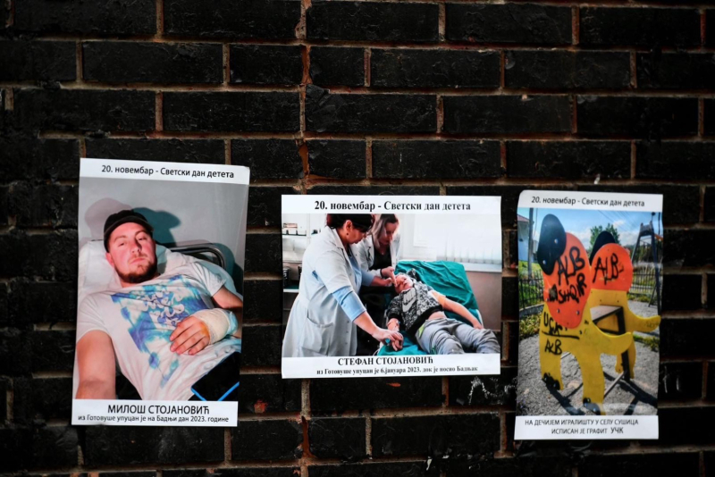 Na plakatima su fotografije Stefana i Miloša Stojanovića iz Gotovuše koji su upucani na Badnji dan 2023. godine, Nikole Perića iz Gojbulje koji je pretučen 1. jula 2021. kada mu je pokidan i krst koji je nosio oko vrata, Mihajla Stankovića iz Kosovske Kamenice koji je pretučen 23. avgusta 2021. godine, kao i Lazara Milutinovića iz Suvog Dola kod Kosovske Mitrovice.