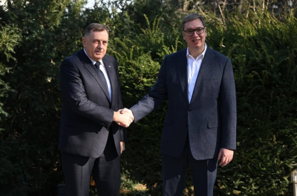 "Suštinski važan sastanak sa predsednikom Dodikom o ključnim pitanjima za srpski narod i budućnost Srbije i Republike Srpske. Zajednički nam je cilj očuvanje mira i stabilnosti, nastavak i jačanje privrednog rasta i odbrana nacionalnih interesa Srbije i Srpske. Razgovarali smo i o obeležavanju Sretenja, koji je u Deklaraciji Svesrpskog sabora zapisan kao zajednički praznik jedinstva naroda i vizije bolje budućnosti koju delimo. Ponosan na našu saradnju, podršku i zajedničku borbu", objavio je predsednik Vučić na Instagramu.
