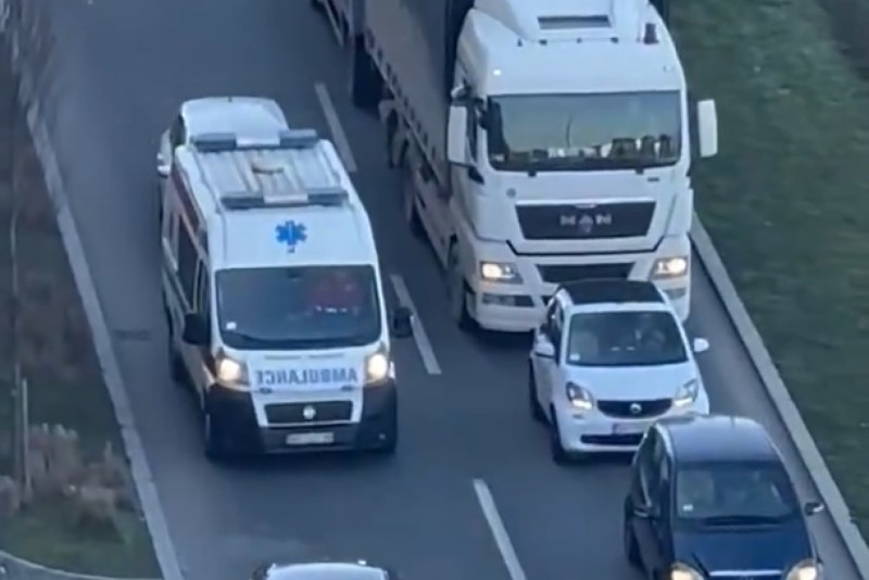 Kako se vidi na snimku, vozilo Hitne pomoći blokirano je i nije moglo dalje, uprkos tome što se, po pravilu vozila Hitne pomoći puštaju da što pre prođu jer nekome i kašnjenje jednog minuta može značiti život.