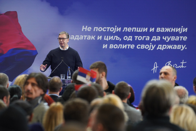 Predsednik Srbije Aleksandar Vučić obratio se građanima u Sportskom centru "Jezero" u Kikindi i poručio da zna da im teško pada kada neko blokira Srbiju.