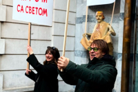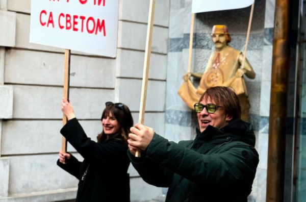 Na današnjem protestu pojavio se i osuđeni silovatelj maloletnika Goran Jevtić, pišu mediji.