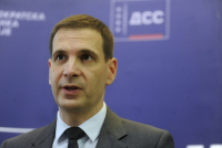 Velika najava predsednika Novog DSS-a Miloša Jovanovića da će danas da blokira beogradski aerodrom, na kraju se pretvorila u cepanje bilborda u Obrenovcu, pišu mediji.