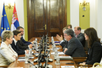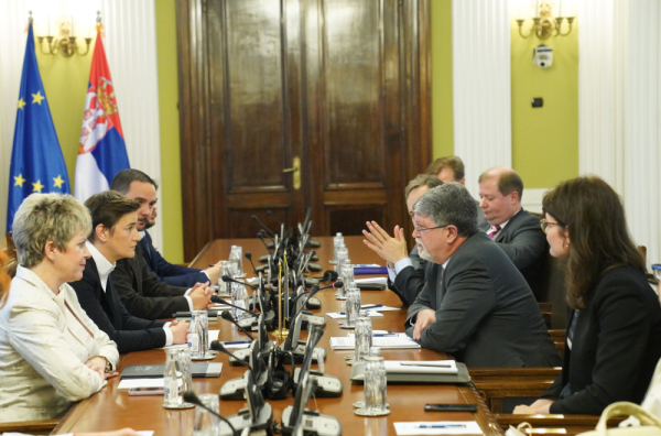 Dodaje se da se na sastanku razgovaralo o usklađivanju spoljne politike Srbije sa spoljnom politikom EU, stanju pravosuđa u Srbiji, protestima i njihovim efektima na društvo, nasilju u društvu, radu na unapređenju izbornih zakona prema ODIHR preporukama, položaju i pravima nacionalnih manjina, a iznad svega potrebi vraćanja dijaloga u društveni diskurs i normalizaciji rada Narodne skupštine, kako bi se donela zakonska rešenja važna za stabilizaciju prilika u zemlji, ali i za evropski put Srbije.