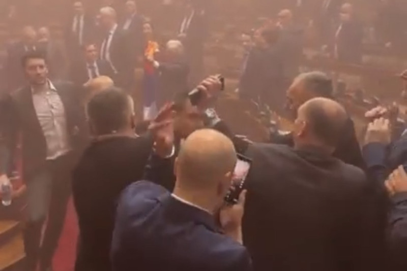 U Skupštini Srbije zavladao je totalni haos. Poslanici opozicije zapalili su baklje u sali Skupštine. Letela su i flaše.